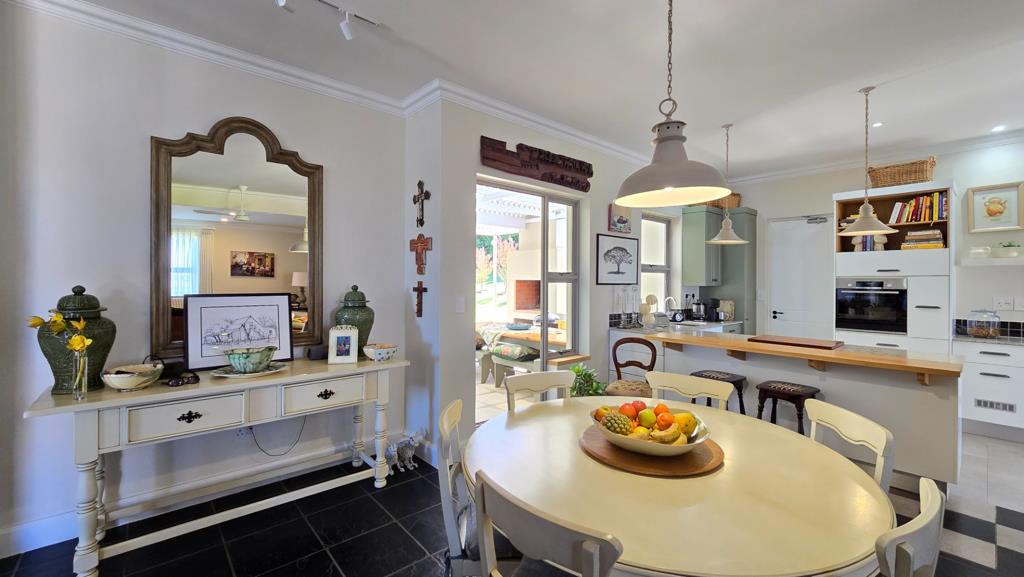Set within the exclusive Mont Fleur Mountain Estate, this exceptional home blends timeless elegance with the tranquility of mountain living. Designed for those who appreciate space, light, and peace, it offers a seamless balance between modern luxury and everyday comfort. The open-plan living and dining areas flow effortlessly onto a covered patio where majestic mountain views set the tone for relaxed living. A built-in braai and wood-burning fireplace make entertaining inviting year-round, while the beautifully appointed kitchencomplete with quality finishes, a scullery, and access to a second outdoor braai areaforms the welcoming heart of the home, ideal for both gatherings and family meals.