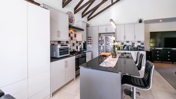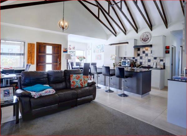 From the moment you step inside, youll be welcomed by a sense of warmth and space. The open-plan design boasts a sun-filled living and dining area with striking exposed trusses, creating a feeling of airiness and style. The living space flows effortlessly onto a covered patio with a built-in braaiperfect for entertaining while enjoying the breathtaking backdrop of the Outeniqua Mountains.