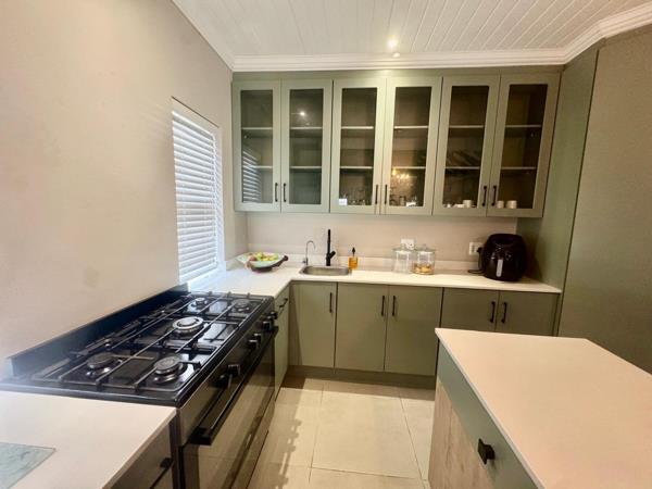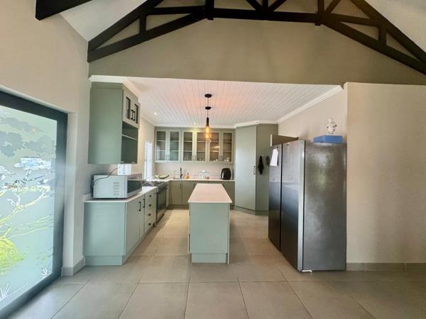 Step inside and be welcomed by a light-filled, open-plan living area where high, soaring ceilings create a sense of freedom and space. The kitchen is a true showstopper a lovely soft green hue adds warmth and charm, while the large gas hob, electric oven, and spacious built-in pantry make cooking a joy. Theres room for a double-door fridge, and the functional scullery neatly tucks away all three major appliances, keeping the main area clean and clutter-free.