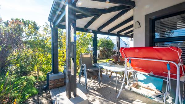 This home includes three bedrooms, two bathrooms, an open-plan living, dining area with a built-in braai and a newly renovated kitchen with ample cupboard space. The beautifully established garden provides privacy, greenery, and plenty of space for children and pets to enjoy.
