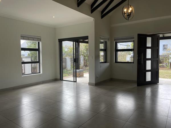 The layout features three bedrooms and two bathrooms, along with a spacious open-plan living and dining area that includes a built-in braai perfect for relaxed entertaining. The modernised kitchen offers generous cupboard space and a clean, functional design that suits everyday use.