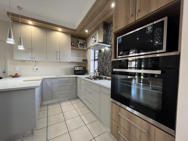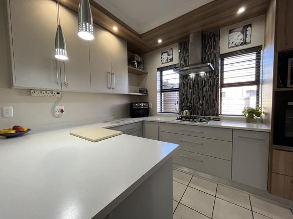 Step into modern comfort and secure estate living with this beautifully designed 3-bedroom, 2-bathroom home. The open-plan living and kitchen area, complete with a separate scullery, creates a seamless flow perfect for family gatherings and entertaining. Stylish laminated flooring runs throughout, complementing the well-sized bedrooms, including a private ensuite for the main bedroom and a second bathroom for convenience.