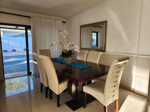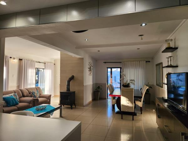 Nestled in the heart of Bodorp, this spacious and well-designed 5-bedroom home offers the perfect blend of comfort and functionality. The generous open-plan living areas include a lounge, dining room, and a study. A cozy wooden fireplace creates a warm focal point in the main living space.