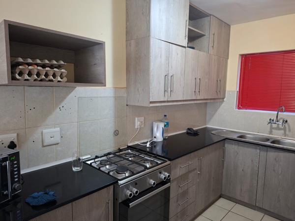 A well-maintained face brick apartment offering high durability and low maintenance living. The property consists of 2 generous bedrooms with built-in cupboards. Open plan kitchen, lounge area with sliding door to private patio, guest bathroom toilet and basin downstairs, full bathroom upstairs between the two bedrooms. This ground floor unit includes one designated carport and also 24-hour security access control, pre-paid electricity and easy access to main and arterial routes. Ideal investment to first time buyers or to scale down. Viewings strictly by appointment.