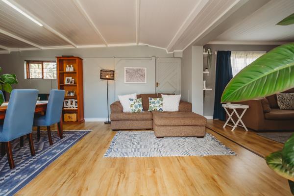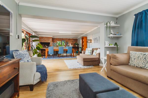 The open plan lounge to dining room creates a seamless flow for easy living and an indoor braai, makes for perfect for entertaining. Doors open out from the dining/braai room to the paved, open patio, overlooking the well-established garden. The well-fitted kitchen featuring granite surfaces, a breakfast nook, gas hob and under counter oven, forms an integral part of the living areas.