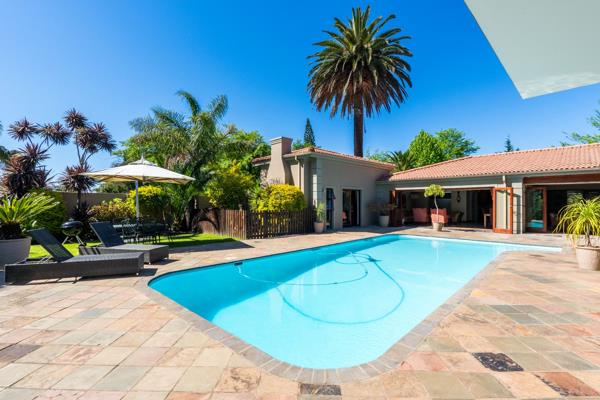 Sparkling swimming pool with tranquil garden views
