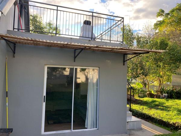 A versatile, covered stoep area can be used as a study, reading nook, or sunny workspaceblurring the lines between indoor and outdoor living.