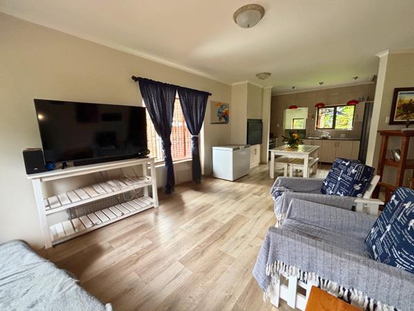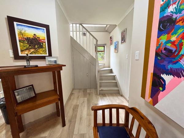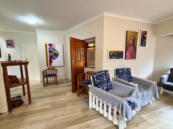 The outdoor areas are equally inviting. The front garden is beautifully landscaped, framing the home with lush greenery and a picturesque view of the mountain. A charming little stoep at the front of the house offers the perfect spot to enjoy your morning coffee while taking in the fresh air and stunning mountain scenery. The back garden is wonderfully spacious, with plenty of lawn for children to play, pets to roam, or simply enjoy the sunshine.