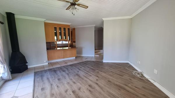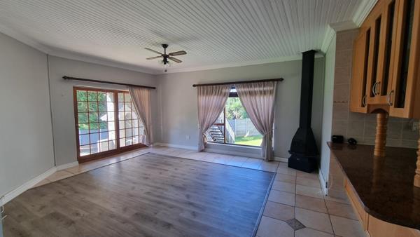 Separate dining and living areas overlooking the swimming pool and braai area