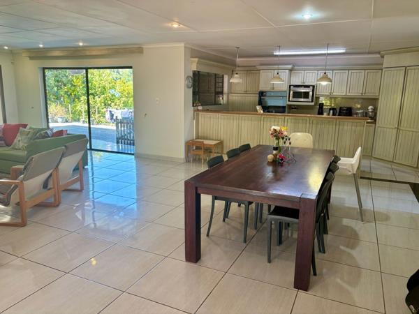 This inviting property offers five bedrooms, with bedroom 5 ideally suited to become an income-generating flatlet or guest suite, having its own outdoor entrance and en-suite bathroom. The main bedroom en-suite is privately positioned, upstairs, creating a peaceful retreat separate from the rest of the bedrooms and bathrooms which are down stairs- any teenagers dream!