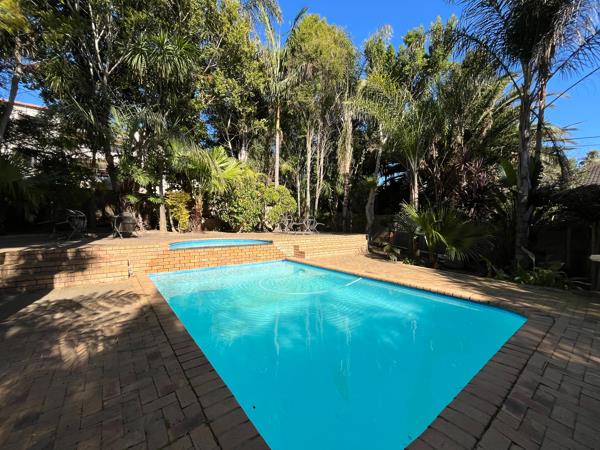 Entertainment is at the heart of this property enjoy an indoor braai, a large covered stoep with built-in braais, and several versatile areas for hosting. Step outside to your very own oasis, featuring a sparkling swimming pool surrounded by mature trees, with the property bordering the natural forest for a sense of peace and privacy.