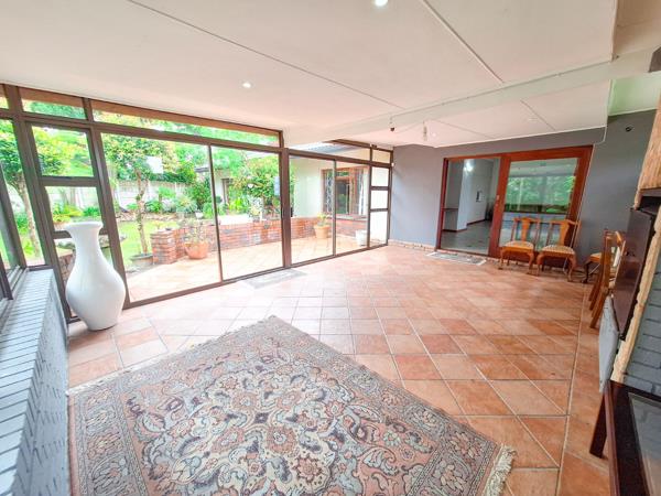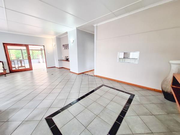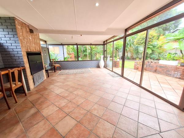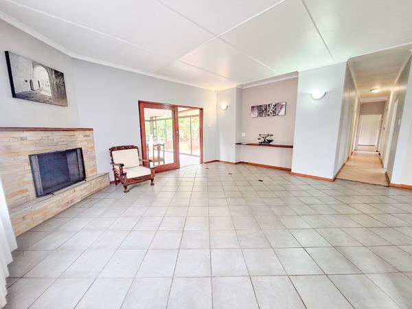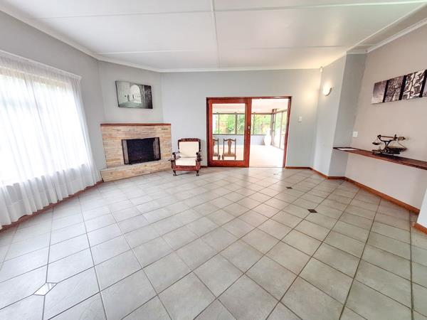 The lounge and dining area opens up onto a sun-filled braai room creating a natural flow for family time or entertaining guests. A fireplace in the lounge adds a cozy touch on cooler evenings.
