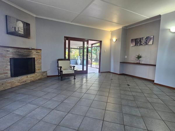A large versatile room can easily serve as a study, gaming room, or hobby space, with generous built-in storage. The sunroom with indoor braai is ideal for entertaining all year round and flows effortlessly into the open-plan dining and lounge area, complete with a cozy fireplace that adds character and warmth.