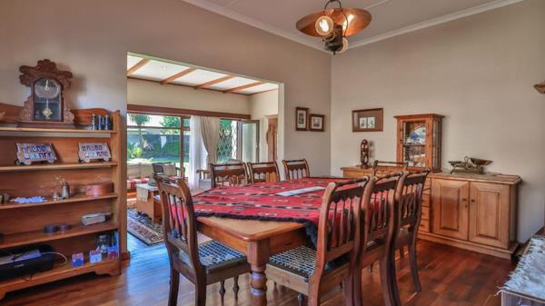 Step through elegant wooden French doors into a home that blends comfort and character in all the right ways. The heart of the home features open-plan living areas, including a cozy lounge with fireplace and parquet flooring, and a dining room with warm wooden floorsperfect for family meals or relaxed evenings in.