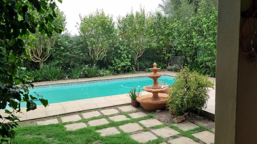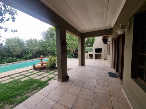 Outdoor braai beside the sparkling pool area perfect for summer fun.