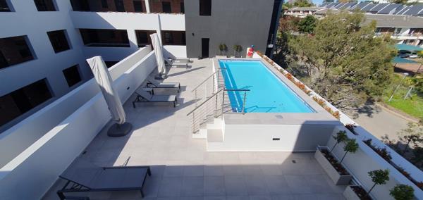 Beyond the individual unit, the building offers an unparalleled lifestyle experience characterized by convenience and leisure. Residents enjoy exclusive access to a spectacular communal rooftop swimming pool, providing panoramic views of the Outeniqua Mountains and an ideal setting for sundowners or relaxation.