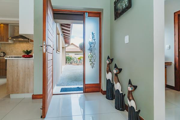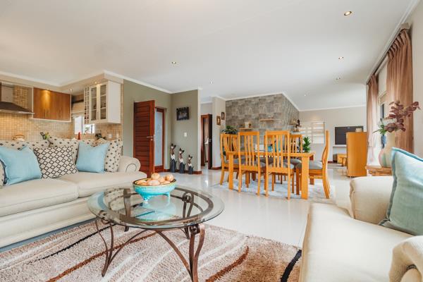 Finished in neutral tones throughout, this appealing home, set in a panhandle, enjoys absolute privacy. Sunlight pours in throughout the day, flooding all four bedrooms and the spacious living rooms. The accommodation comprises inter-leading and open plan living areas, an inviting braai room, with doors leading out to the beautiful garden, with outside braai area and boma, and a stylish and well-fitted kitchen, with separate scullery.