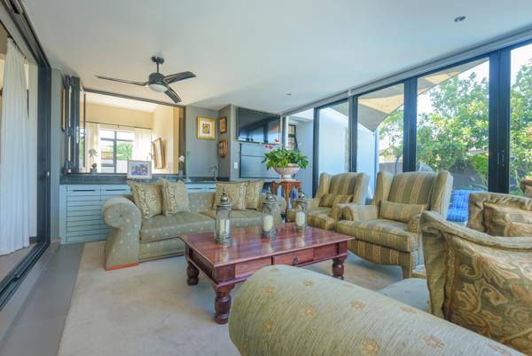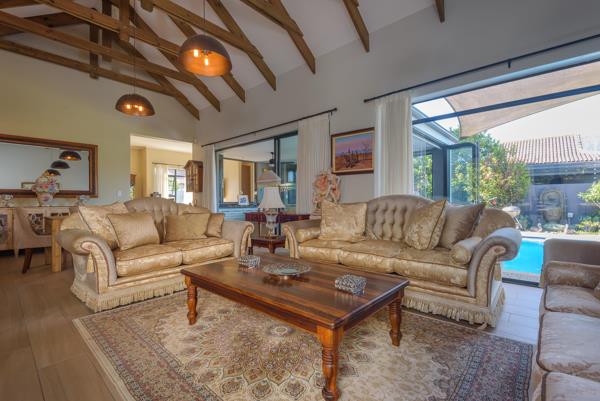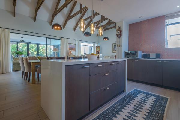 Designed for effortless living, the open-plan layout flows beautifully through generous interleading spaces. Perfect for hosting gatherings, the home features a superbly appointed kitchen with Caesarstone countertops, a separate scullery, and a walk-in pantry. The dining and living areas seamlessly connect to an indoor braai room via large sliding doors, while stacking doors lead to a private, zen-inspired garden ideal for relaxation or entertaining.