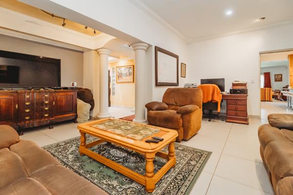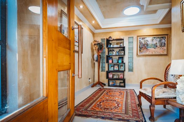 A long, paved driveway, providing ample secure parking, leads up to the double garage, with automated door and direct access into the scullery, as well as the large carport, that can accommodate approximately four vehicles.