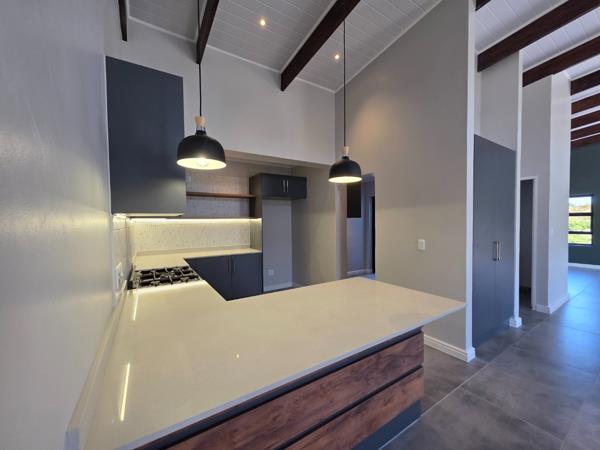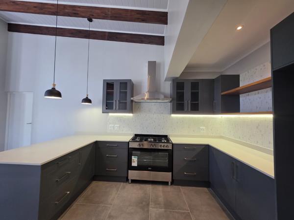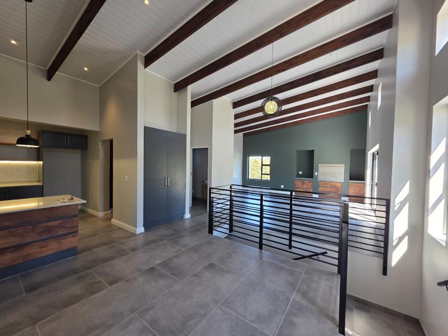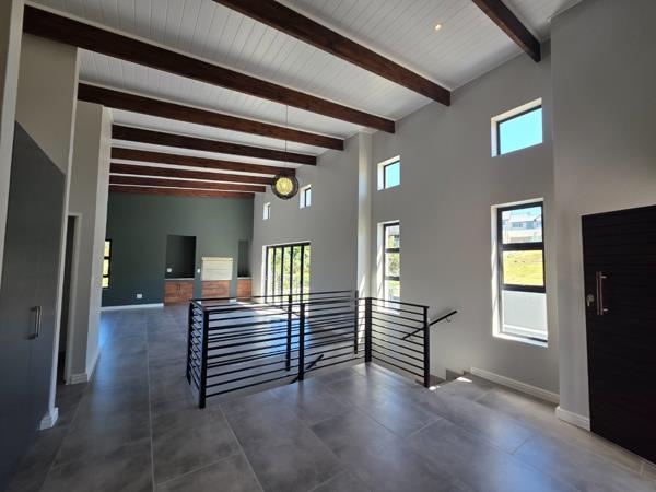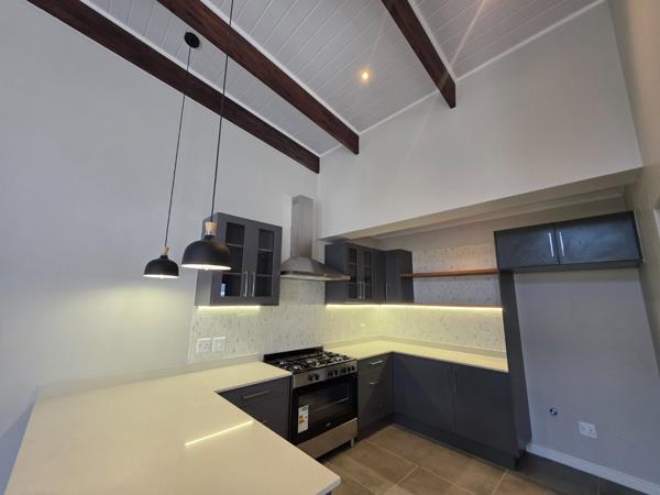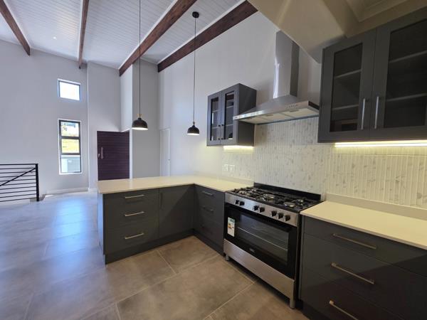 Upstairs, youll find a bright and airy living space with high ceilings and large windows that flood the area with natural light. The modern open-plan kitchen (with separate scullery) flows seamlessly into the dining and lounge area, where stacking doors open onto a balconyperfect for entertaining or relaxing. A built-in braai and guest toilet add to the convenience and contemporary lifestyle.