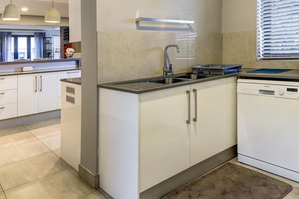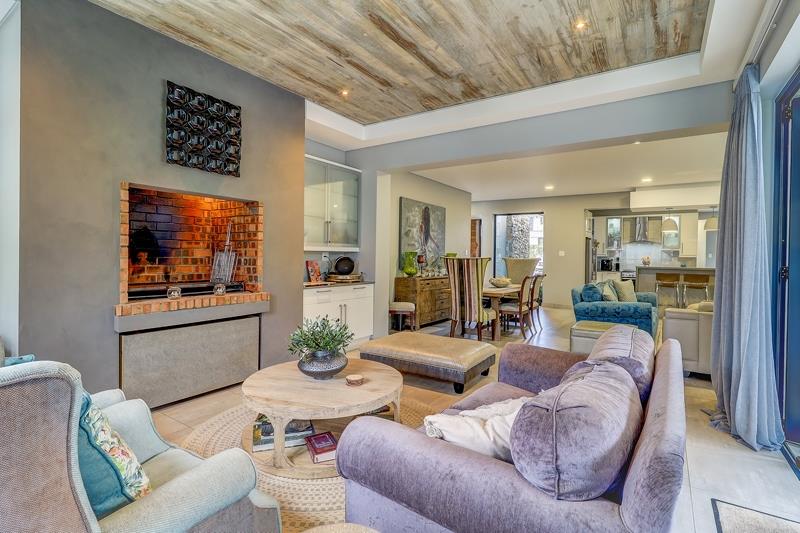 At the heart of the home lies a chefs kitchen that balances functionality with flair. Crisp white cabinetry and a generous island with pendant lighting create a space thats as practical as it is beautiful. Adjacent living and dining areas are thoughtfully arranged for both entertaining and relaxation, featuring a fireplace for an authentic South African barbeque.