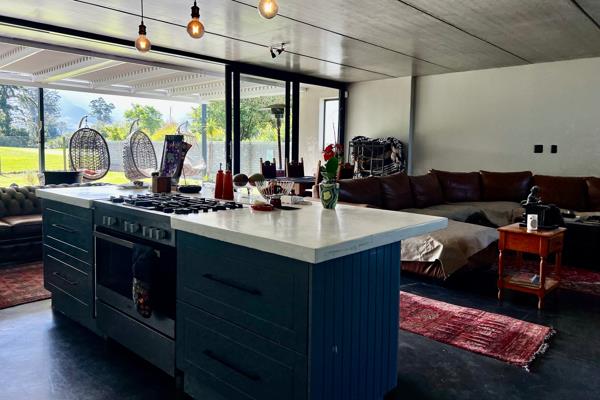 The lower level is designed for effortless living and entertaining, with a generous open-plan layout that flows seamlessly onto a large, covered patio and braai area, perfectly positioned to embrace the surroundings. A well-appointed kitchen with a separate scullery offers both practicality and convenience, with direct access into the spacious double garage fitted with automated doors.