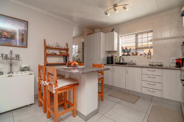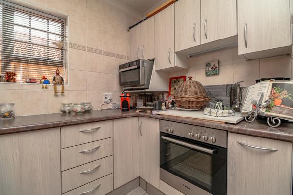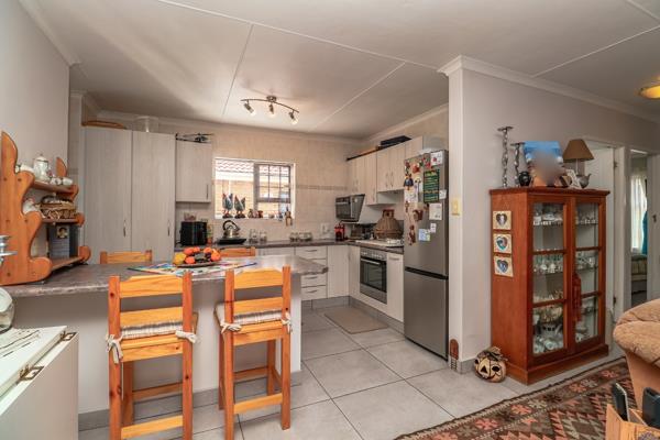 The home offers 2 spacious bedrooms and 1 bathroom. The open-plan living and dining area provides additional space for a study corner. A light-filled, well-equipped kitchen with ample cupboards flows into a separate scullery, which leads directly to the single garage and out to the washing line.
