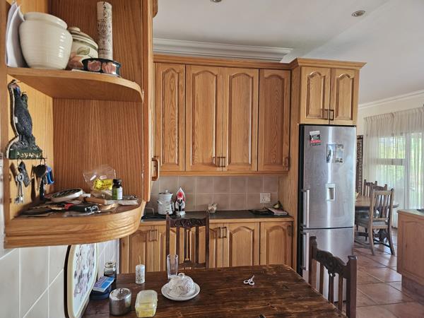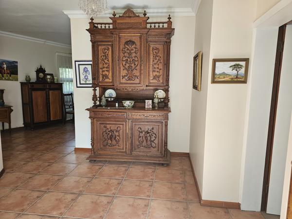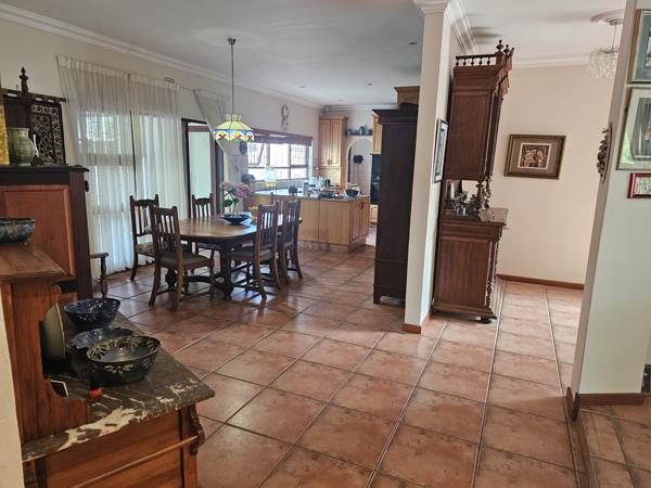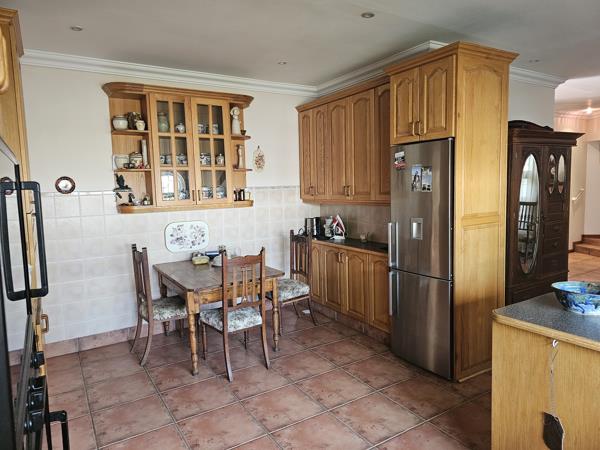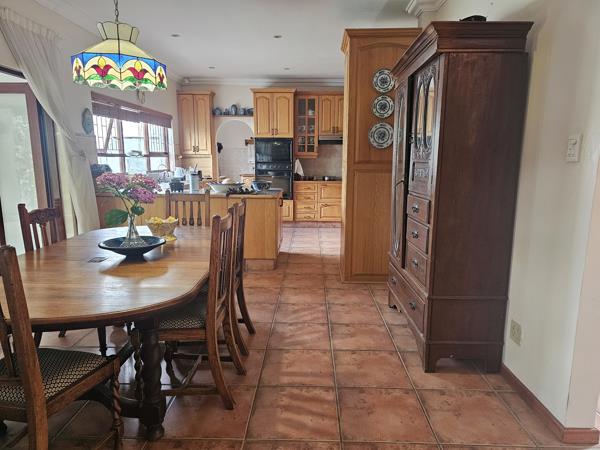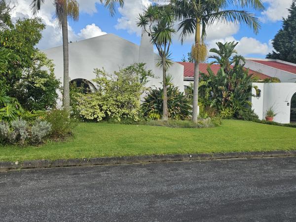This spacious four-bedroom family home, located in a peaceful, established neighborhood, offers breathtaking views of the Outeniqua Mountains and is close to mountain bike routes and hiking trails. The home features a large entrance hall leading to a separate study, a sunny lounge, and an open-plan dining area with a kitchen and separate laundry. The generous braai area is perfect for gatherings, while the four spacious bedrooms, including a main bedroom with a walk-in closet and en-suite bathroom, provide ample living space. Additional highlights include two automated garages with extra storage space, eight air conditioners, two water tanks, a Queen Ann stove in the braai area, and a wine cellar. The property also includes a one-bedroom flatlet with its own lounge, kitchen, braai area, and automated garage. The well-established garden boasts fruit trees and a hot house for growing vegetables, making this a perfect home for a new family to create lasting memories.