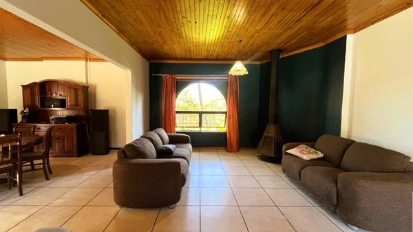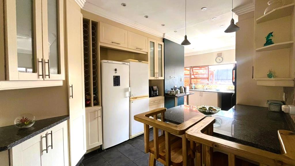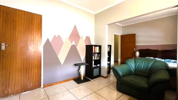 The living spaces are designed to bring people together. The lounge flows comfortably into the air-conditioned dining room, making everyday living easy and relaxed. The kitchen is both practical and inviting, fitted with an eye-level oven, gas hob, and a charming breakfast nook. The adjoining scullery keeps appliances tucked away and daily chores simple. The entire home is tiled throughout, giving it a clean, modern feel.