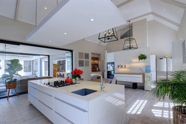 On entering you are welcomed to a large reception room which hosts the formal living and dining areas. From there you move into the fully imported German Kitchen which is a Chefs delight with the scullery adjacent to the kitchen ensuring the heart of this home remains organised and efficient. This then flows into an informal lounge & dining area with indoor braai.