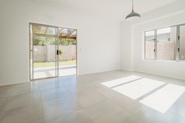 Three bedrooms, with laminated flooring and ample built-in cupboards, accommodate the family and visiting friends. The main bedroom is en-suite to a shower, basin and wc, while the remaining two bedrooms share a bathroom with bath, basin and wc.