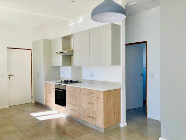 The open-plan living and dining area is bright and welcoming, with sleek tiled flooring that flows effortlessly onto a covered patio. Perfect for relaxing or hosting, the outdoor space includes a built-in braai, pergola, and a private, enclosed gardenideal for family gatherings or quiet evenings.