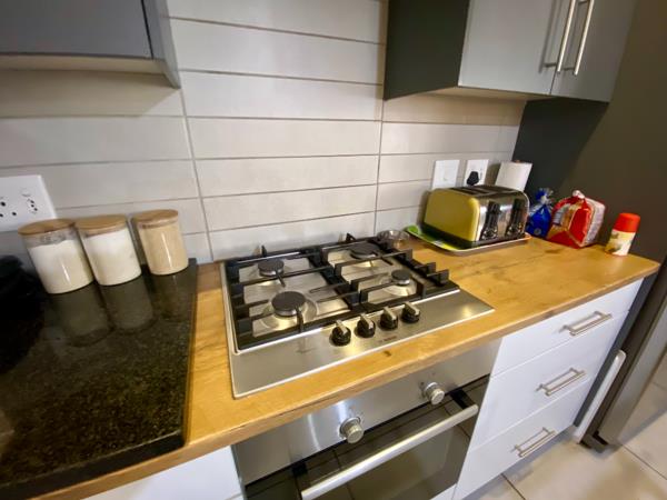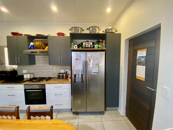 One of the standout features of this property is its energy efficiency. Equipped with a full solar power system, including an inverter and batteries, the home offers peace of mind during load shedding and helps reduce monthly utility bills. The single garage has also been fitted with extra built-in cupboards, making it a functional space for storage or hobby use.