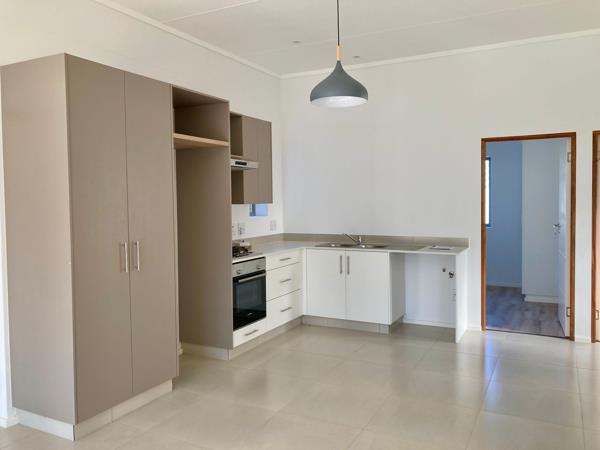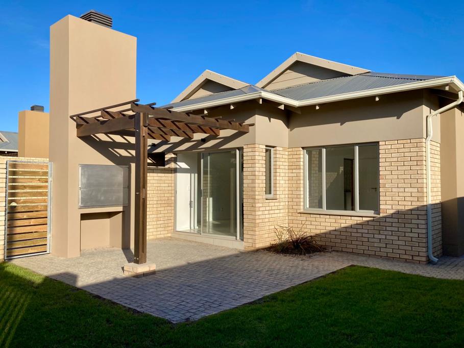 The heart of the home is a bright, open-plan living and dining area, featuring modern tiled floors and opening up to a covered patio. Equipped with a built-in braai, pergola, and an enclosed garden, this space is perfect for entertaining or enjoying quiet family moments outdoors.