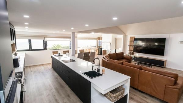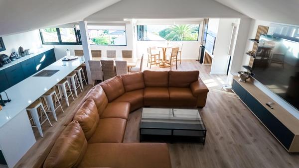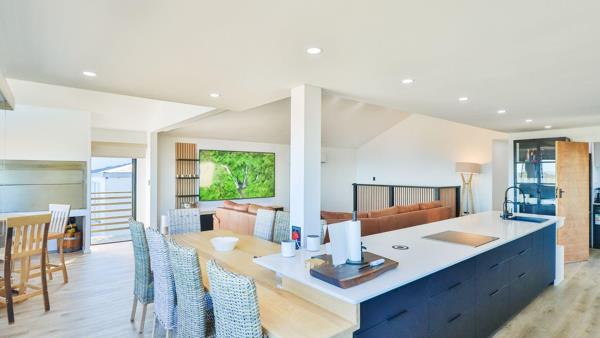 The first floor offers an open-plan kitchen, lounge and entertainment area with a built-in braai. Stacker windows truly capture the magic of the sea and coastal stretch beyond.