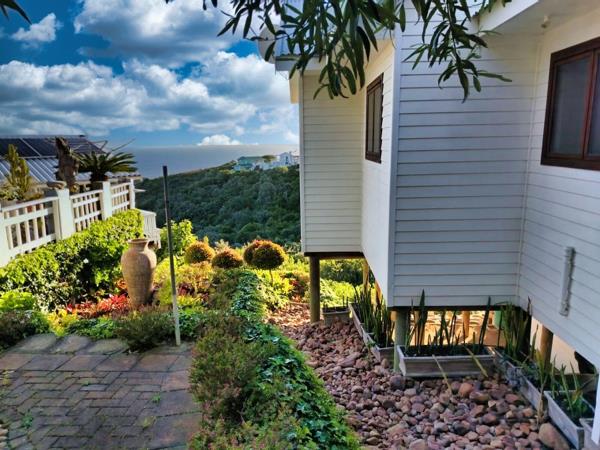 Waltz into your new home and prepare to be utterly enchanted by the panoramic views that await. Perched gracefully on the hillside of Herolds Bay, this elegant wooden residence blends natural charm with elevated living.