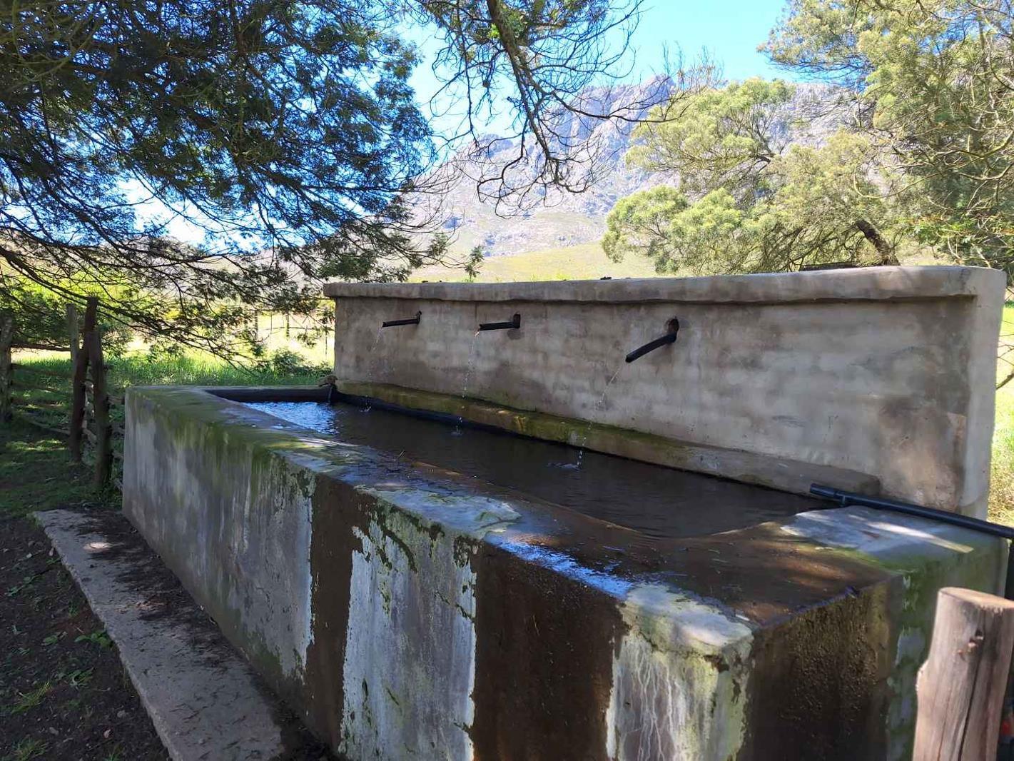 -The abundant water supply to the farm is via a historic furrow from a kloof in the mountains. Water is piped and gravity-fed from a reservoir to the house, garden and nearby fields.