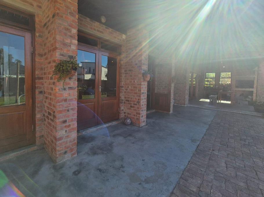 Evenings can be enjoyed beside the fireplace or in the covered braai area that links seamlessly to the outdoors. Practical features include a gas stove and geyser, a 5kVA inverter system with two batteries for reliable backup power, a double garage with a drive-through door and an automated gate for extra convenience.