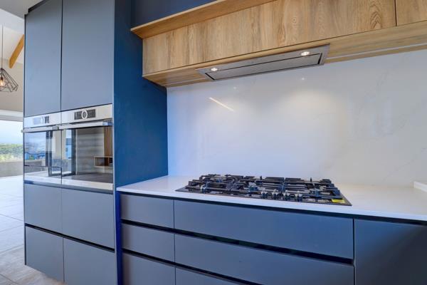 From entering this home, the flow of the open-plan living area that combines the spacious lounge, dining room, and a well designed kitchen. The kitchen boasts 2 Bosh eye level ovens, one with a hot tray, a Bosh gas hob with extractor, built in freezer and fridge and a luxurious coffee maker, ample counter and storage space, and a central island. A Bosh dishwasher, washing machine and tumble dryer perfectly round off the laundryscullery and offers abundance of cupboard space.