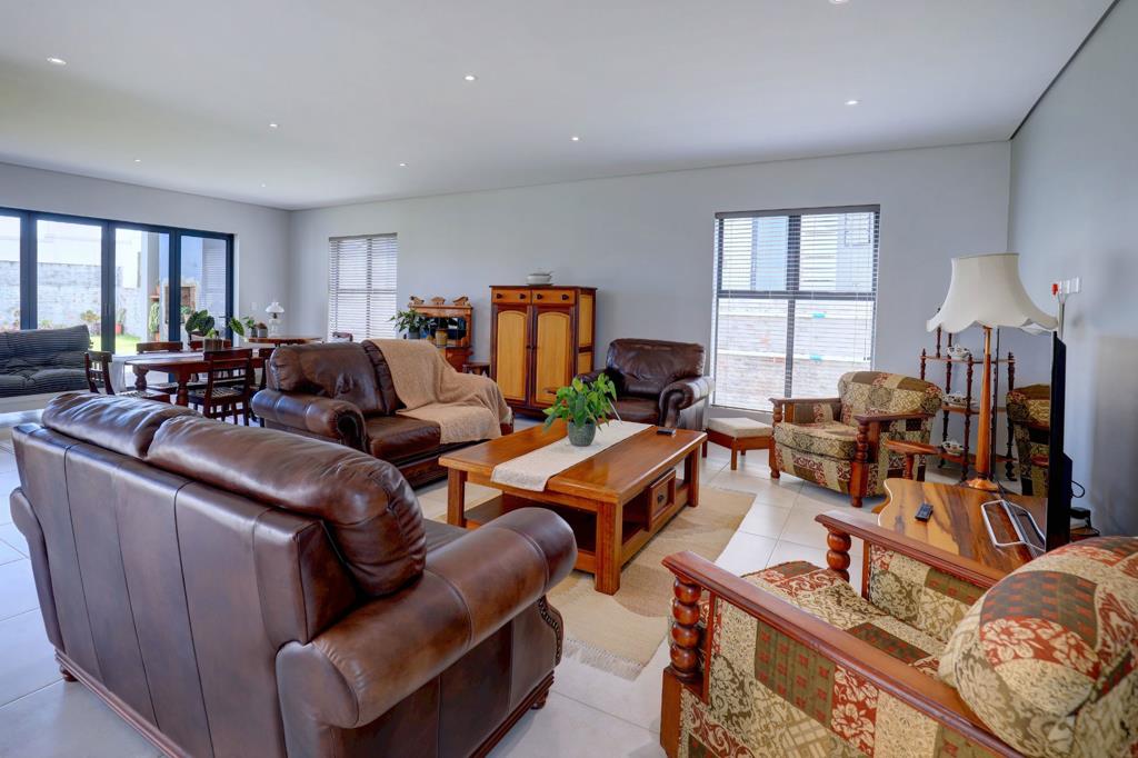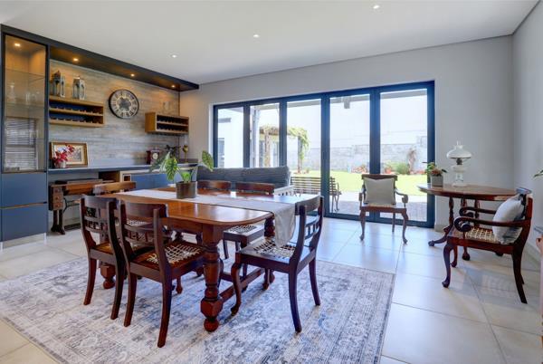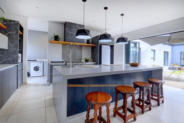 Open plan well fitted kitchen with modern finishes, scullery and walk in pantry. Kitchen leads onto a wooden deck through stacker doors. Lounge dining area links to the braai patio through stacker doors leading onto the back garden.