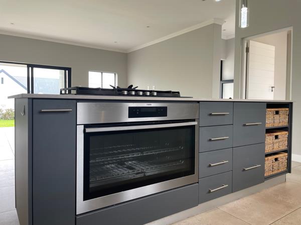 The open-plan layout connects the kitchen, dining, and living areas, creating an expansive feel perfect for entertaining. The modern kitchen, with ample storage and a scullery, integrates seamlessly with the dining and living spaces.