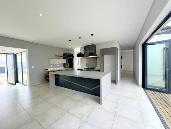 The heart of the home is the expansive open-plan living area, which flows effortlessly into a stylish, contemporary kitchen. Boasting a separate scullery and a walk-in pantry, the kitchen provides excellent storage and practicality. A large island with a prep bowl creates the perfect hub for casual dining and entertaining. Stack doors open from the kitchen onto a wooden deck, enhancing the seamless indooroutdoor lifestyle that the home promotes.