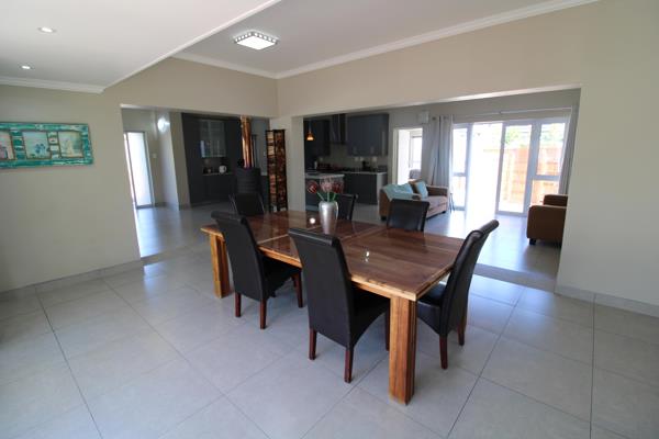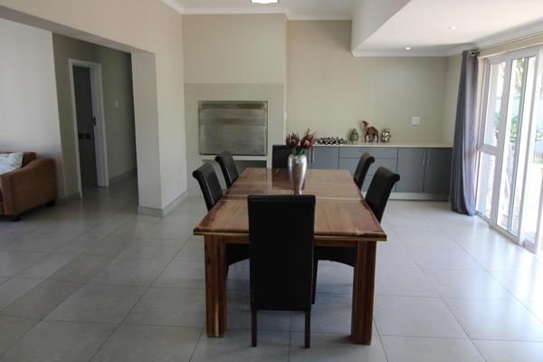 Open-plan living, with attention to detail and modern finishes, are key features of this family home. The versatile floorplan enjoys open-plan living areas, complete with indoor braai, opening out to a patio with pergola. The well-designed kitchen, complete with centre island, gas hob and separate scullery, forms an integral part of the living areas. A study nook is a nice-to-have feature.