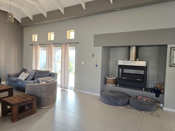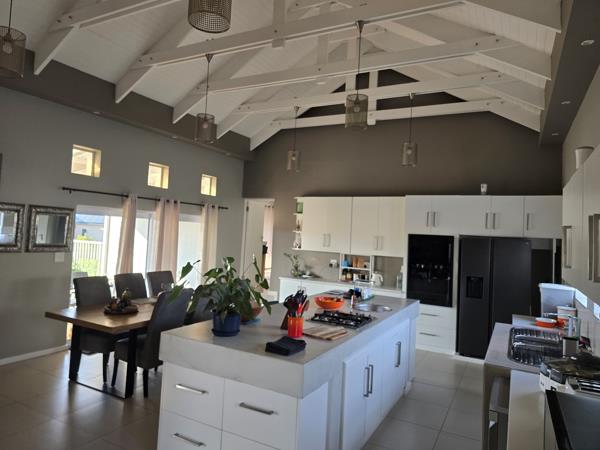 This architecturally designed home offers a seamless blend of style, space, and functionality. Step inside to discover a vast, open-plan living area with soaring ceilings and a cozy fireplace, setting the tone for relaxed, modern living. The expansive kitchen is a chefs delight, fitted with a gas stove, ample cupboard space, and a layout designed for effortless entertaining.