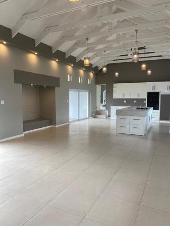 Designed with both elegance and practicality in mind, the home boasts open, flowing interiors and an inviting atmosphere. The spacious living area features high ceilings and a central fireplace, creating a warm and modern aesthetic ideal for everyday living and entertaining.