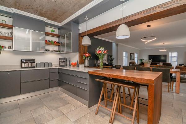 At the heart of the home lies a beautifully appointed gourmet kitchen, featuring premium cabinetry, a generous centre island, and a fully equipped separate scullery a space crafted for those who appreciate both style and culinary functionality.
