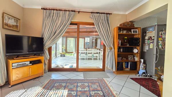 Enjoy indoor-outdoor living with an indoor braai, large sliding doors, and a covered patio that extends into a sun-drenched enclosed sunroom perfect for entertaining or unwinding in a warm, light-filled setting.