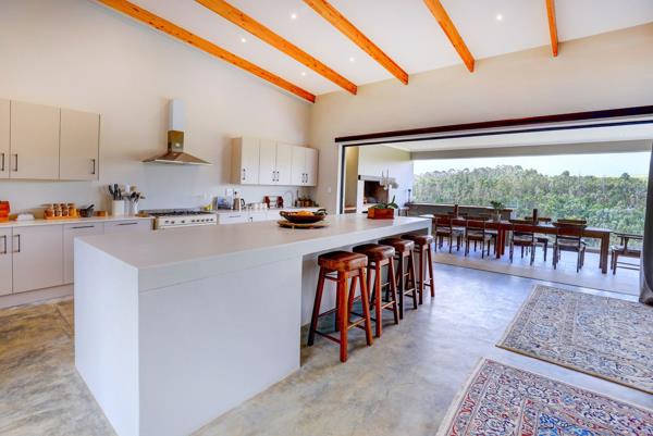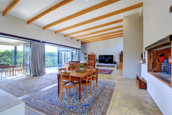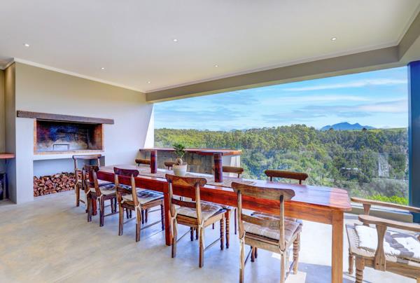 As you step onto the first floor, you''ll be greeted by an open plan living area, dining space, and a spacious well-equipped kitchen with a scullery, perfect for both everyday living and entertaining. The indoor braai room, boasting a built-in braai, pizza oven, and convection oven adds to the convenience of entertainment. Open the large stacking doors to access the balcony, where another built-in braai awaits, providing the ideal setting to enjoy the lush green forests, cliff rocks, and majestic Outeniqua Mountain that surround you.
