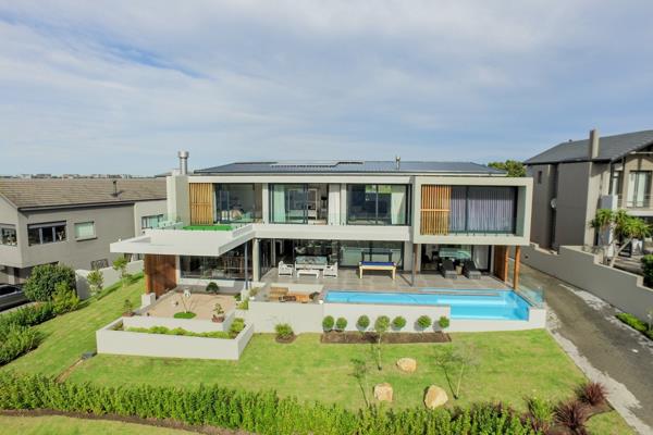 Stunning new north facing home available in Oubaai Golf estate. Architecturally designed by renowned Eddie da Silva, to combine modern style, open living and natural lighting to create a lovely family and entertaining home. It includes an indoor braai as well as a heated pool with ample patio space leading to a fire pit and zen garden outside. 4 Bedrooms with bathroom en suites and a study room area. The house offers views of the Outeniqua mountains, Gwaing river and forest. State of the art finishes in the kitchen and bathrooms. Other features include LED lights, 3 garages with extra parking space, a golf cart port, solar with inverter system, gas stove, electric oven, scullery, guest loo, cinema room and an artificial grass putting green.