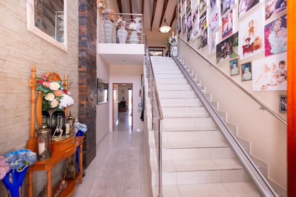 Triple Garage - Parking galore! Double and single automated garage doors and additional parking space for visitors. The internal space allows for 5 cars to park. Inverter and batteries. Storage room in Garage. Laundry in Garage with washing machine point and tumble drier point. Ample cupboards for storage in this large space with worksop space. Two separate single wooden doors enter onto garden and paved, with high surrounding walls, which house an enclosed wooden outside cupboard for garden equipment. The washing line, swimming pool pump and heater are also fitted here.